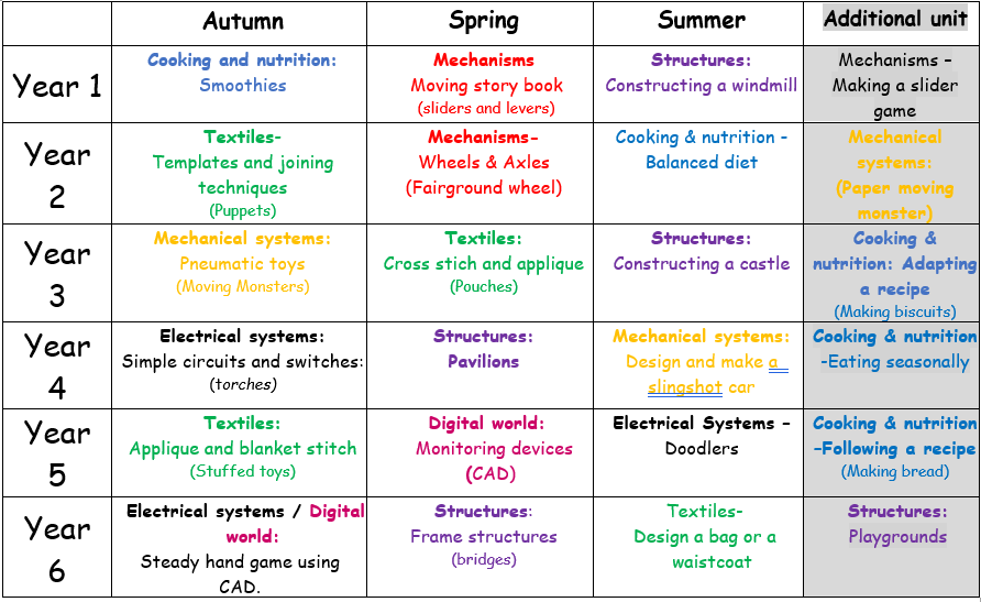 For pupils in Key Stage One and Key Stage Two, we have chosen to teach DT by using the Kapow scheme of work. Kapow is a clear and comprehensive scheme of work in line with the National Curriculum.