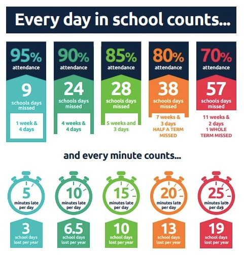 Ensuring that your child/ren are in school each day, will give them the best possible chance to achieve their academic potential and have real opportunities in further education and the world of work.