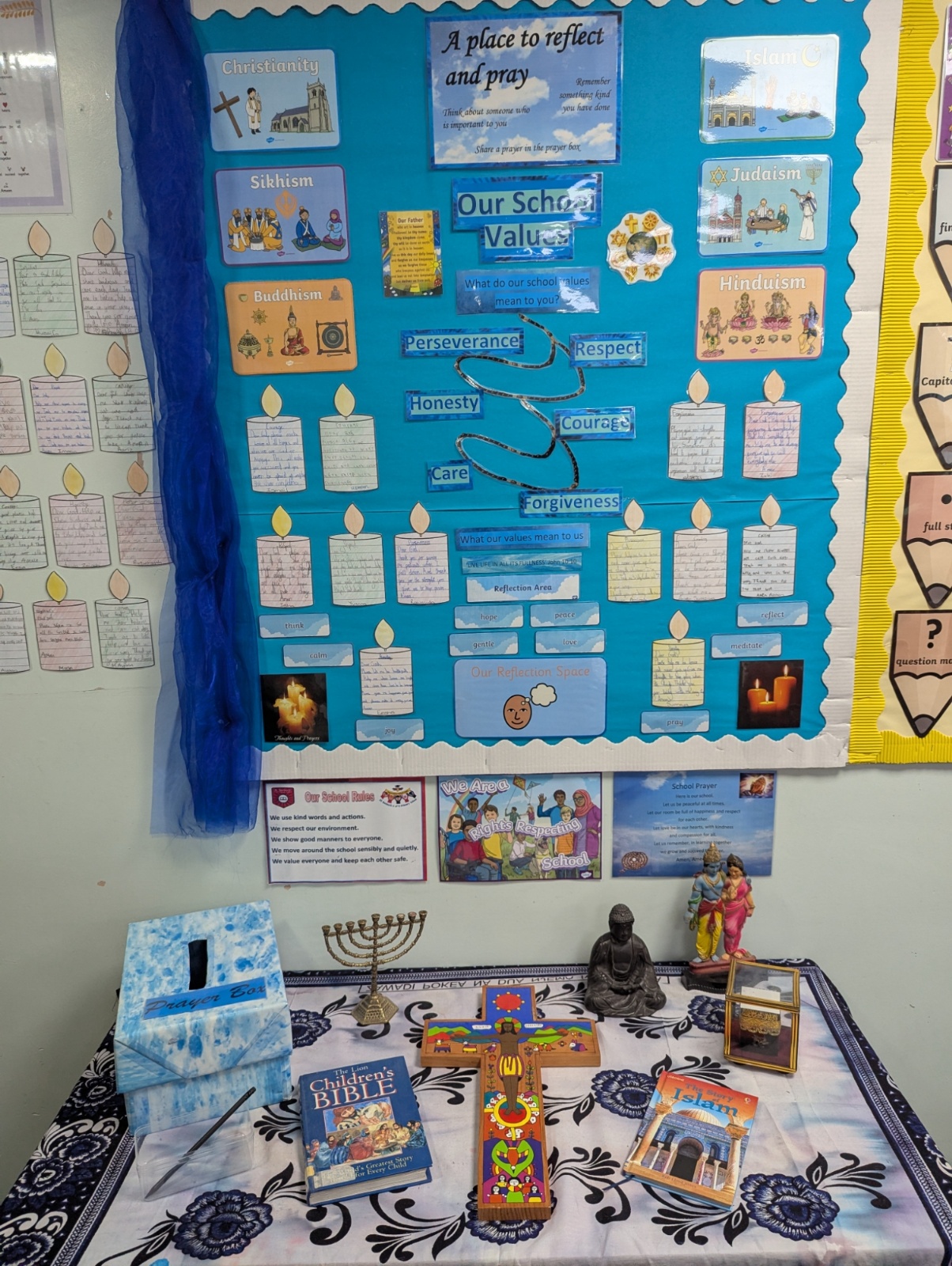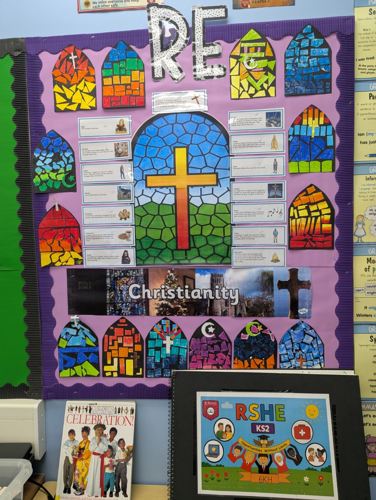 We have developed our curriculum with the intention of promoting our spiritual, moral, social and cultural development. As a church school, we have a strong focus on Christianity, along with acknowledging and appreciating the teachings, and practices of the other principal religions, that are largely represented in our multicultural British society.