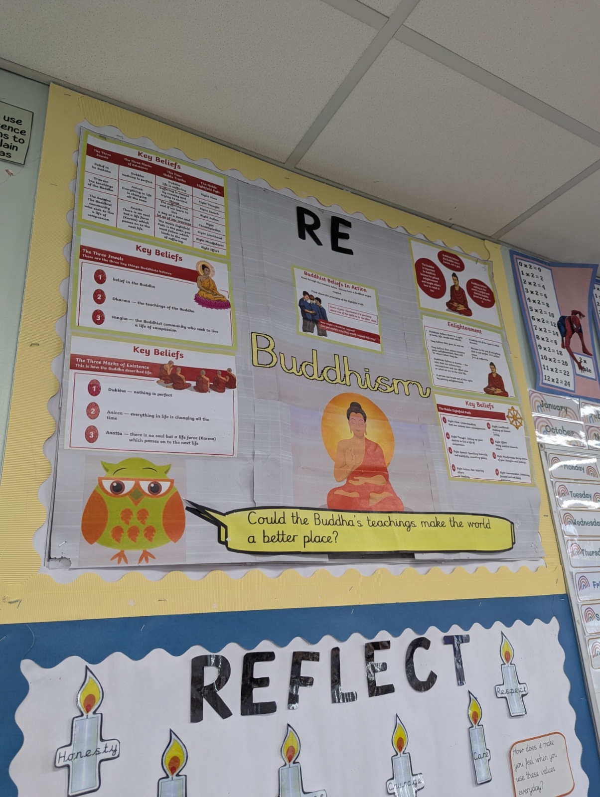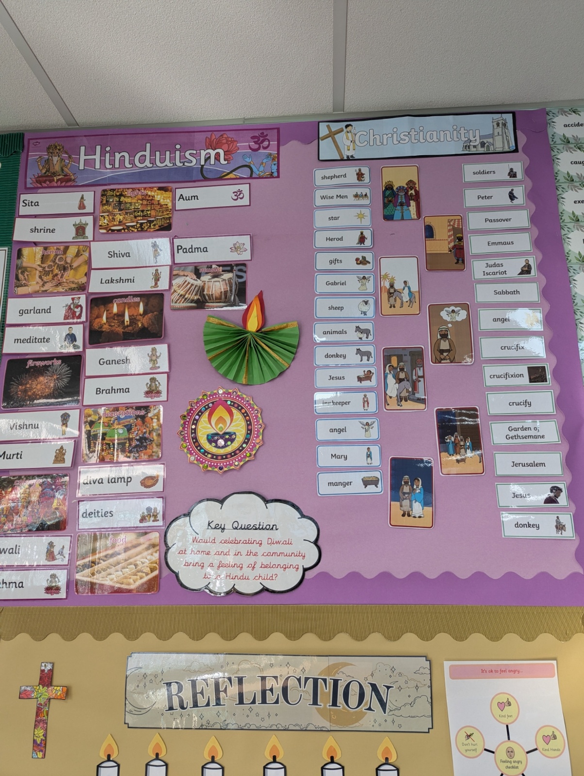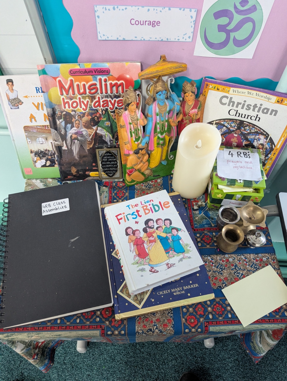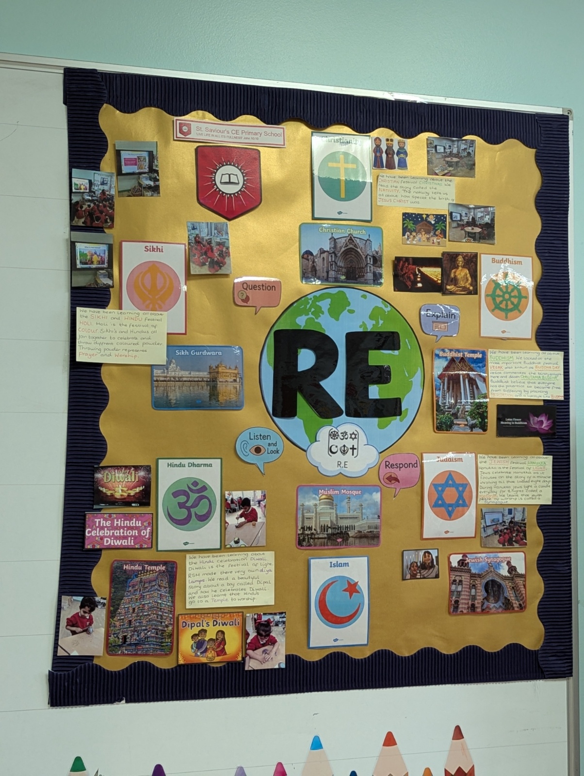 Our aim is that our children acquire an awareness and understanding of differing religious beliefs, attitudes, practices and rituals. We want children to access Religious Education through a wide range of mediums, for example: analysing religious writings, drama, art, in-depth discussions and stories.